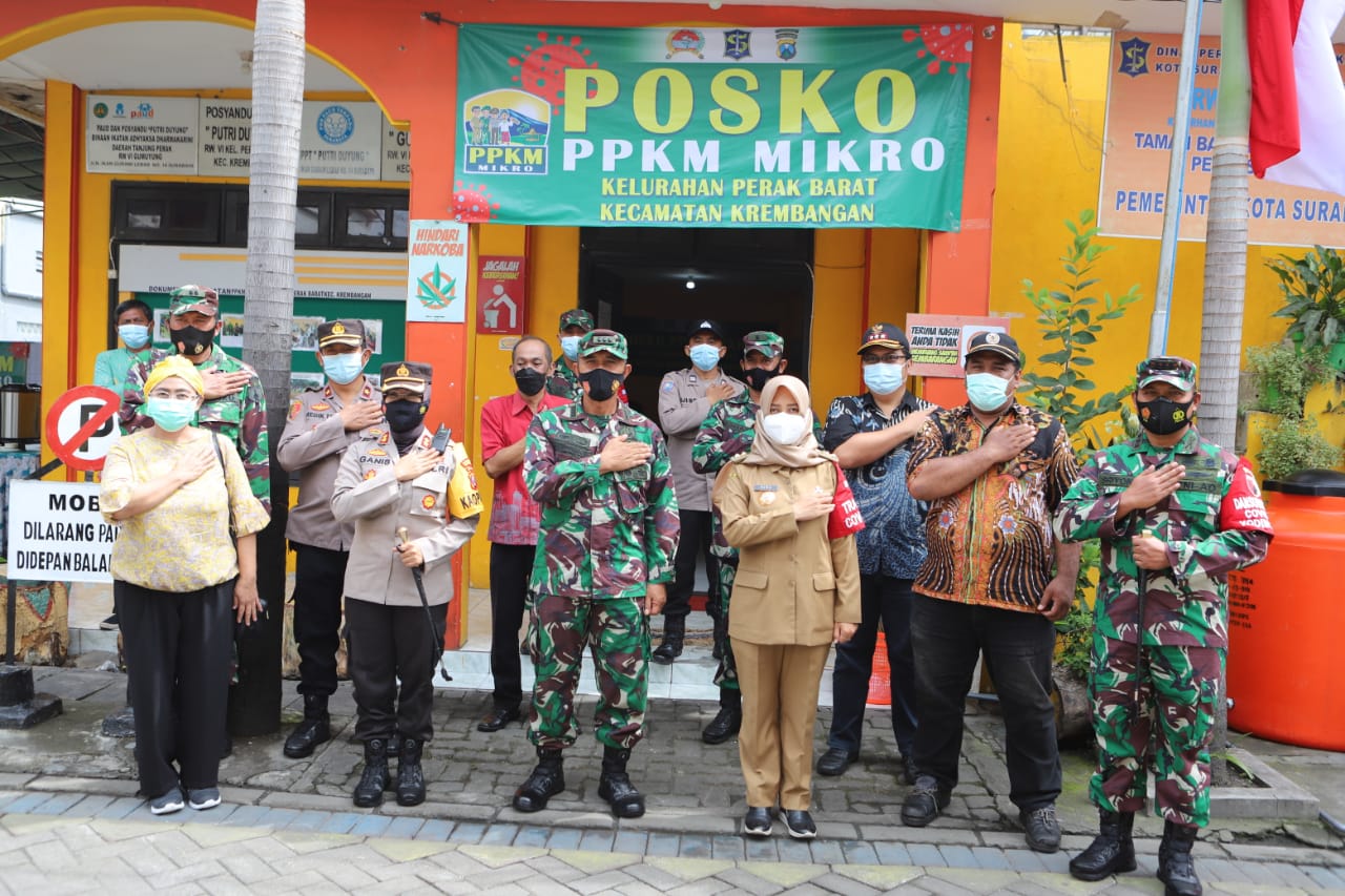 Selain itu juga ikut hadir dalam penilaian ini Camat Krembangan Bapak Agus Tjahyono, kepala Kelurahan Perak Barat Ibu Rina Aisyah yang sekaligus Ketua Posko PPKM Mikro Kelurahan Perak Barat.