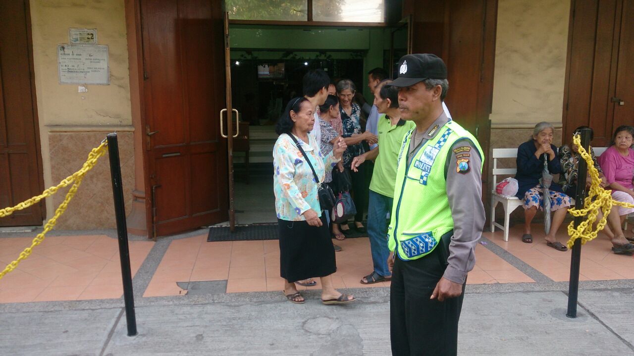 Selain itu pengamanan juga dilakukan 2 personil TNI dan 1 anggota Hansip, ditambah petugas keamanan gereja.