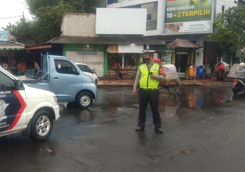 Seputarperak.com- Pengaturan lalu lintas sore dilakukan personil Unit Lantas Polsek Semampir, Polres Pelabuhan Tanjung Perak di Jalan Pegirian, Sabtu, 27 Pebruari 2021.