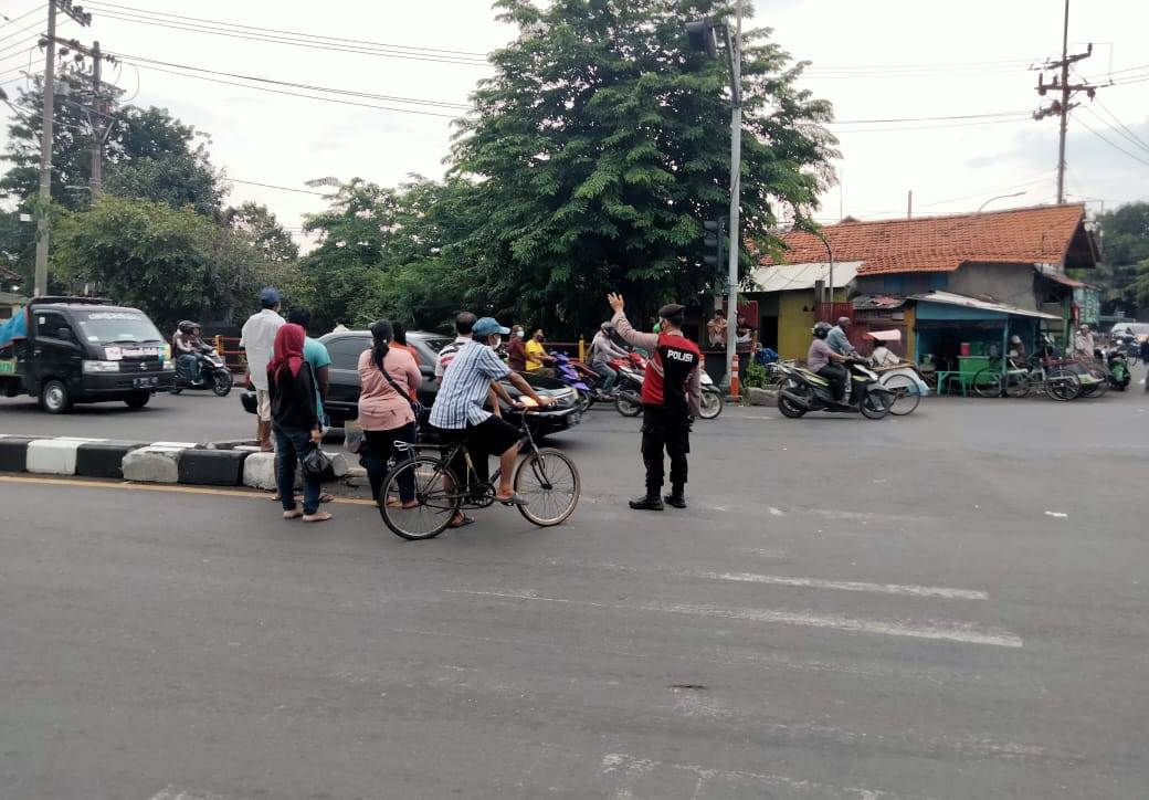 Saat itu selain melakukan pengaturan personil Polsek Semampir juga membantu menyeberangkan warga sekitar.