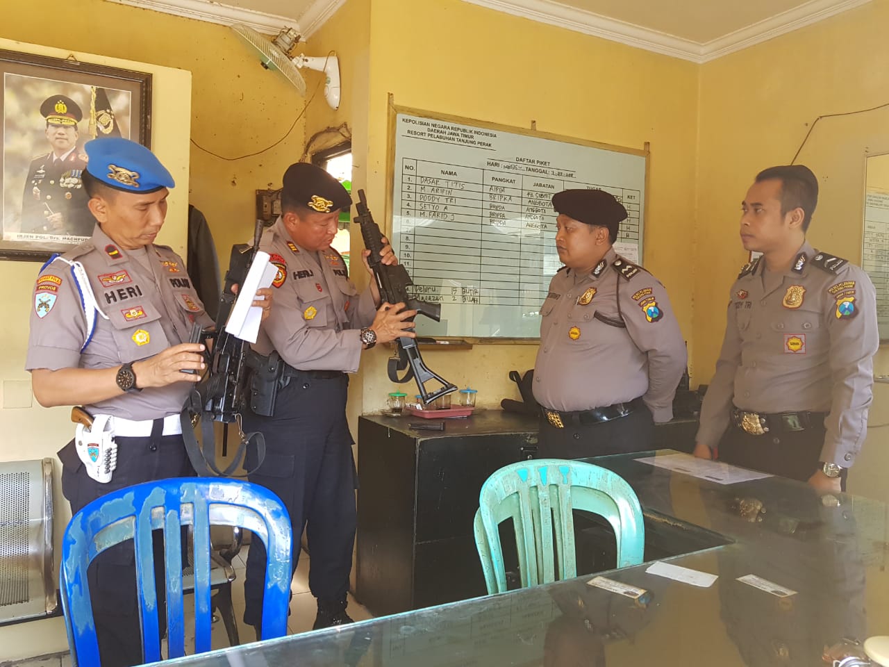 Seperti yang terlihat pada Senin pagi, 3 September 2018, dimana personil Propam Polres Pelabuhan Tanjung Perak yang dipimpin Kasi Propam, Ipda Heri, melakukan pengecekan senjata api milik personil Satsabhara yang tengah berjaga di pos.