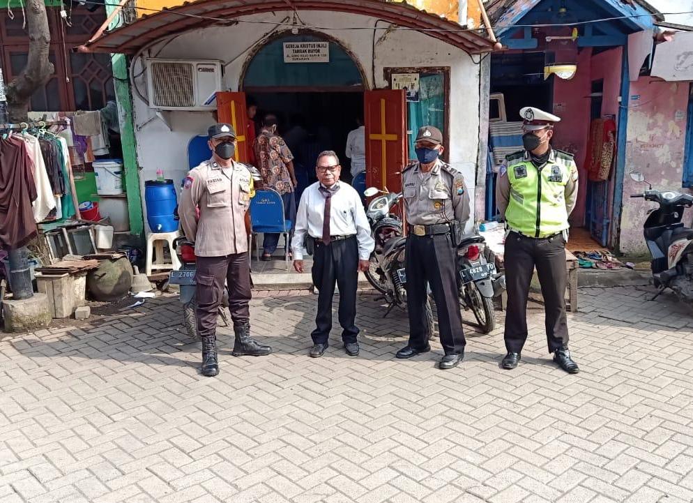 Seputarperak.com- Polsek Asemrowo, Polres Pelabuhan Tanjung Perak melaksanakan pengamanan kebaktian di dua gereja di wilayahnya, Minggu pagi, 7 Maret 2021.