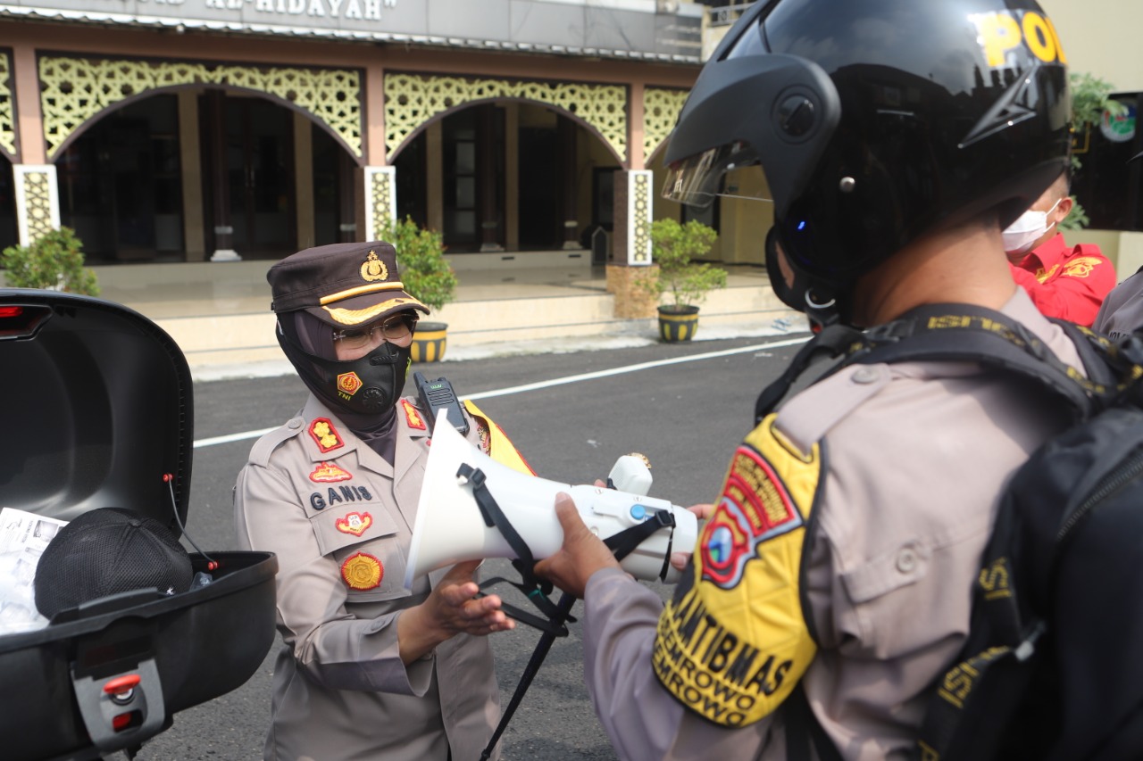 Setelah dilakukan pengecekan, Kapolres menyerahkan kunci Ranmor berikut tas ransel kepada para Babinkamtibmas, lengkap dengan helm, borgol, tongkat T, megaphone dan jas hujan.