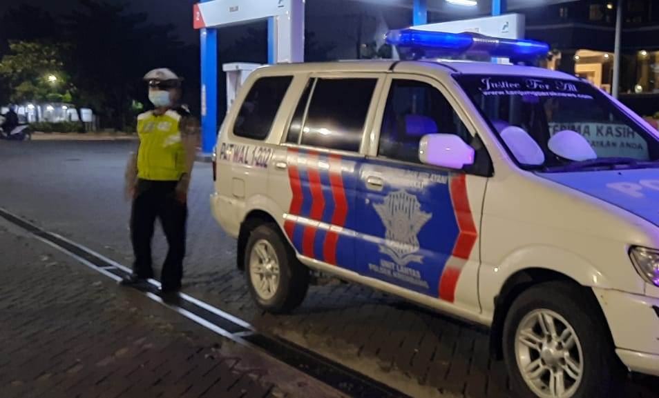 Seputarperak.com- Patroli dilakukan personil Polsek Krembangan, Polres Pelabuhan Tanjung Perak di SPBU depan Hotel Antariksa, Jalan Gresik Gadukan, Senin malam, 15 Maret 2021.