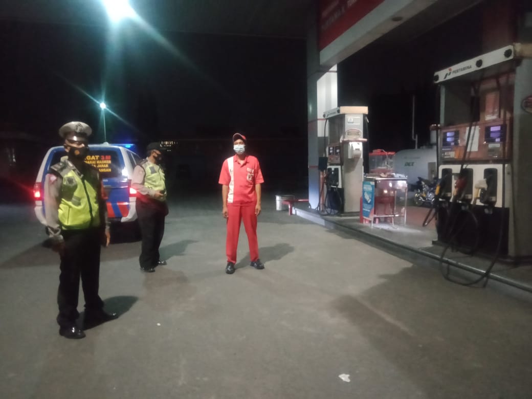 Seputarperak.com- Patroli dilakukan personil Polsek Pabean Cantikan, Polres Pelabuhan Tanjung Perak di SPBU Jalan Sisingamangaraja, Rabu malam, 24 Maret 2021.