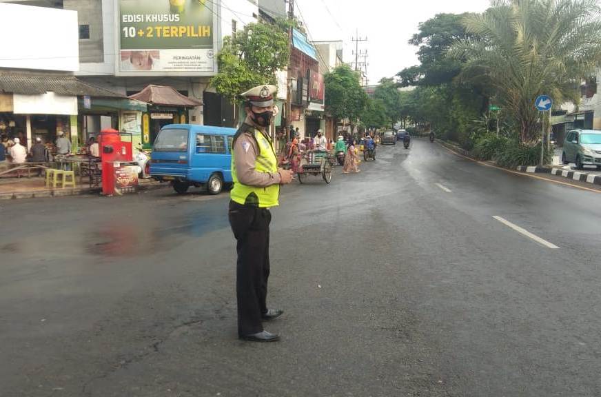 Seputarperak.com- Pengaturan lalu lintas pagi dilakukan personil Unit Lantas Polsek Semampir, Polres Pelabuhan Tanjung Perak di Jalan Karang Tembok, Kamis, 25 Maret 2021.