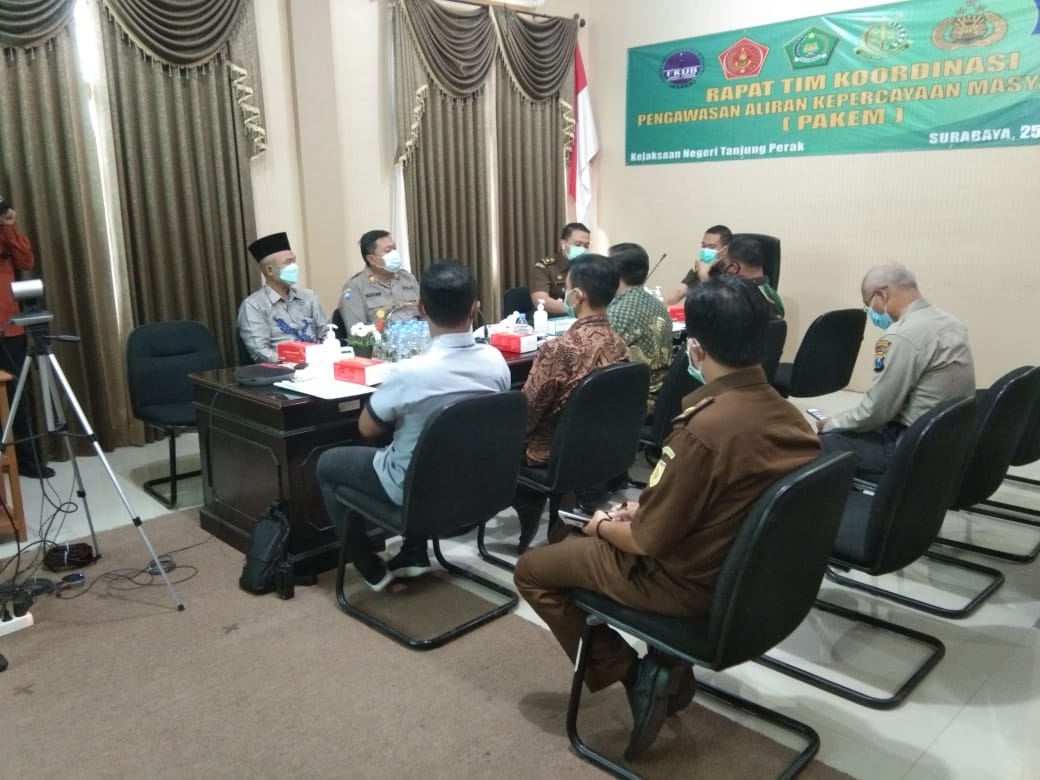 Seputarperak.com- Polres Pelabuhan Tanjung Perak ikut menghadiri rapat koordinasi (Rakor) membahas terkait Pengawasan Aliran Kepercayaan dan Aliran Keagamaan Dalam Masyarakat (PAKEM) di Aula Kejaksaan Negeri Tanjung Perak, Kamis siang, 25 Maret 2021.