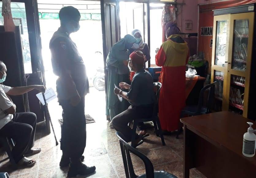 Satu persatu warga dilakukan pemeriksaan kesehatan atau screening sebelum mulai dilakukan vaksinasi.