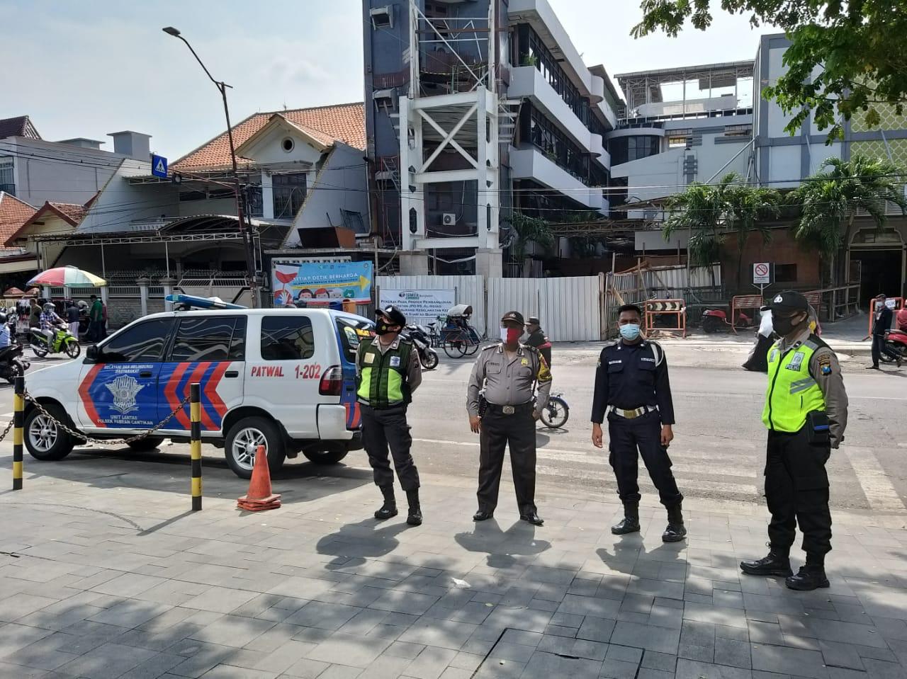 Seputarperak.com- Patroli dilakukan personil Polsek Pabean Cantikan, Polres Pelabuhan Tanjung Perak di Rumah Sakit Al Irsyad, Jalan KH Mas Mansyur, Minggu pagi, 28 Maret 2021.