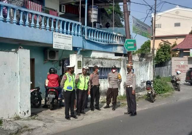 Beberapa personil diterjunkan untuk mengawal kegiatan ibadah yang dihadiri 25 orang jemaat ini.
