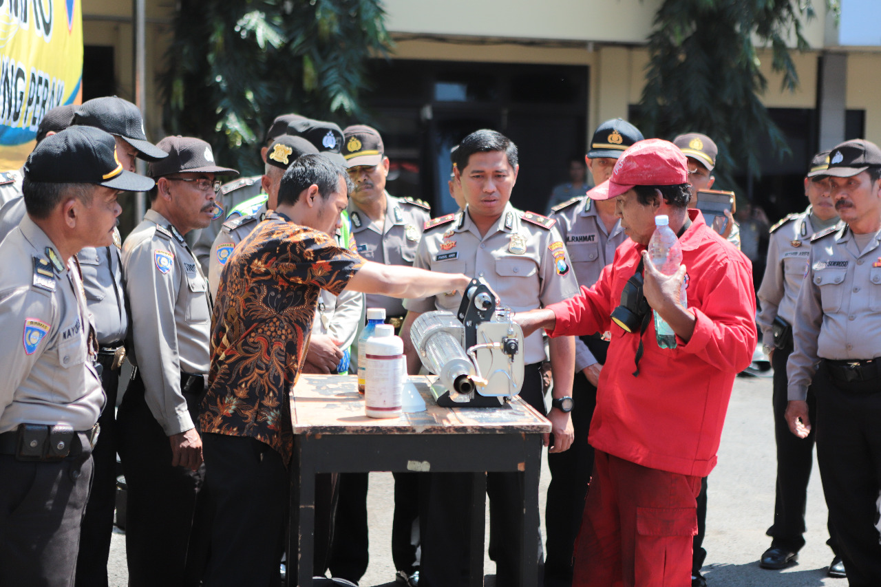 Bahkan Wakapolres juga turut memberikan materi mengenai penggunaan fogging yang diikuti seluruh personil Satbinmas. Termasuk para Babinkamtibmas di Polsek-Polsek jajaran.