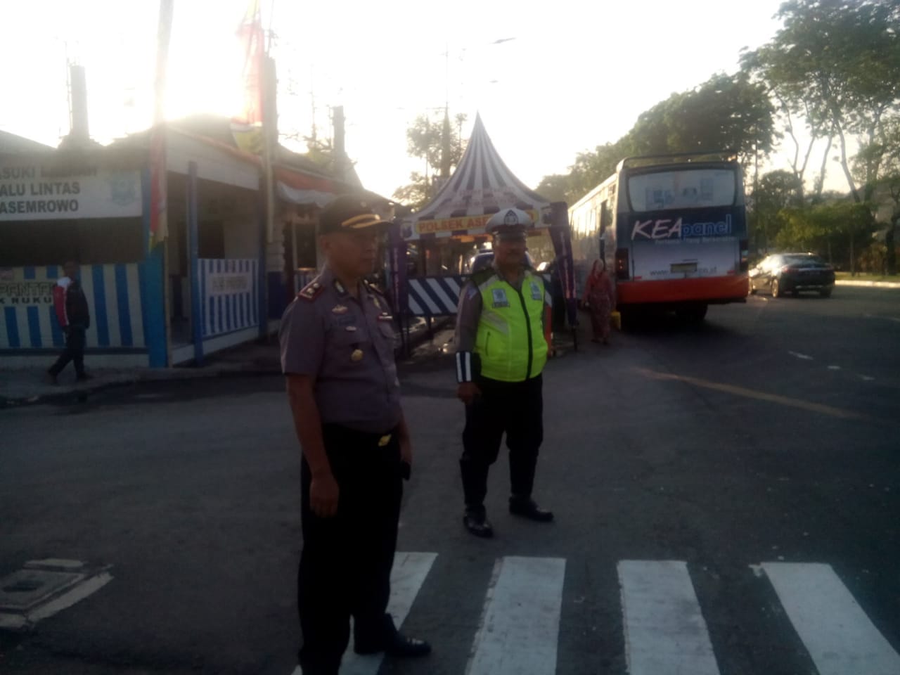 Saat itu Kapolsek Asemrowo, Kompol Nur Suhud juga ikut memantau situasi arus lalu lintas mendampingi personilnya.