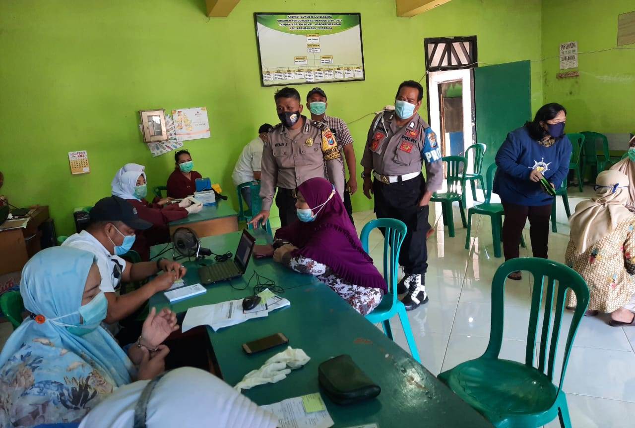 Seputarperak.com- Pengamanan vaksinasi Covid-19 dilaksanakan personil Polsek Krembangan, Polres Pelabuhan Tanjung Perak di Balai RT 07 RW 06 Tambak Asri, Kelurahan Morokrembangan, Selasa pagi, 20 April 2021.