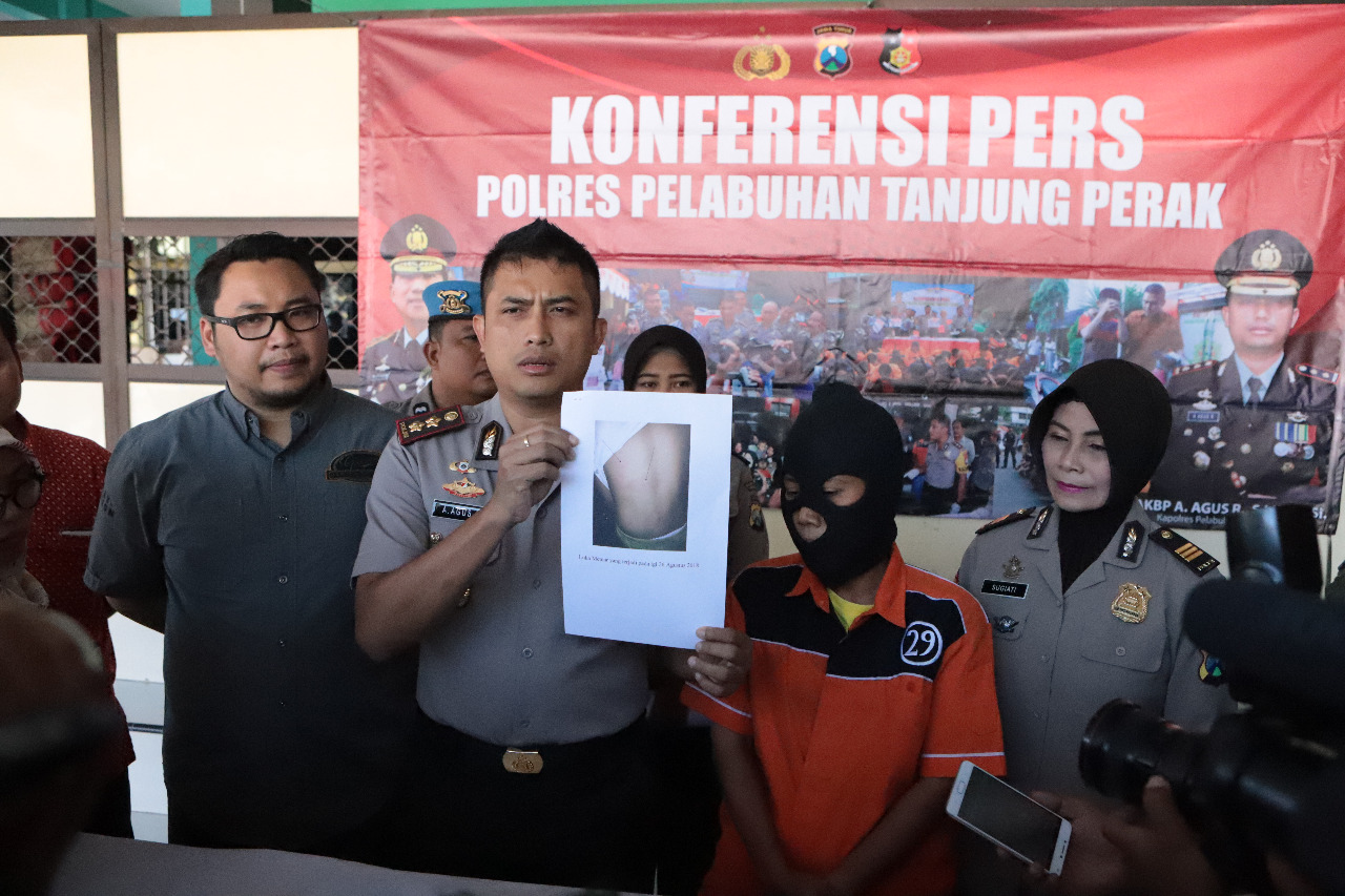 Si ibu tiri sadis berinisial A (35) kini ditahan di Polres Pelabuhan Tanjung Perak, setelah hasil penyelidikan yang dilakukan Unit Reskrim memastikan memiliki bukti yang cukup untuk menetapkannya sebagai tersangka.