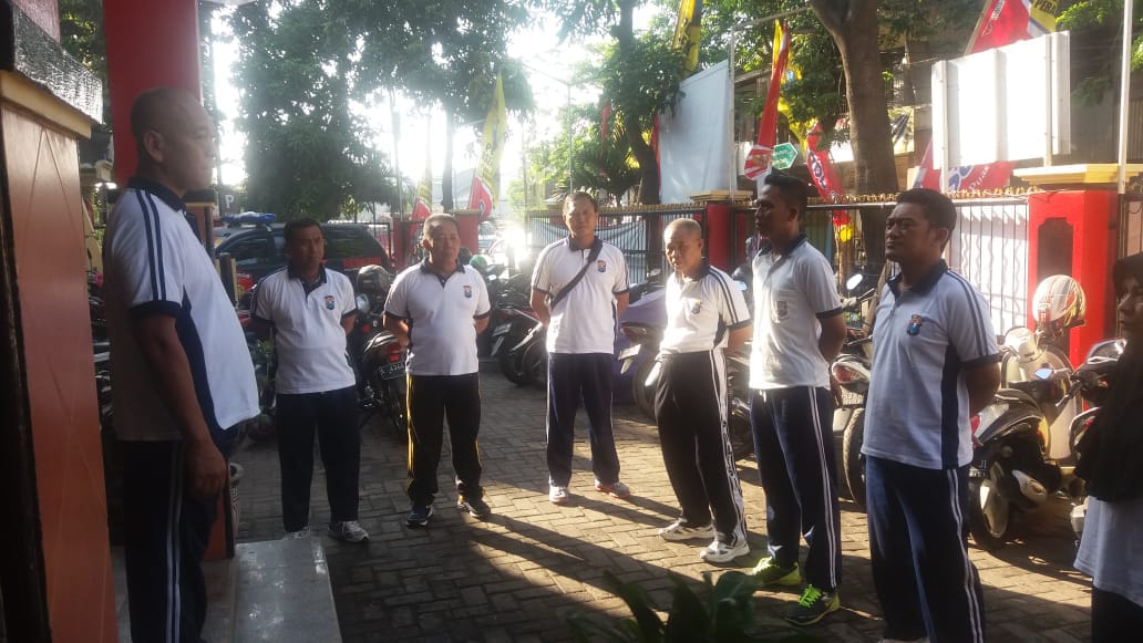 Sekitar pukul 07.00, para personil melaksanakan apel pagi di halaman Mapolsek, dipimpin Kompol Nur Suhud.