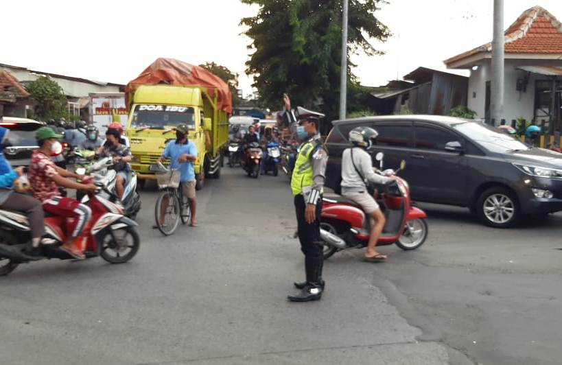 Seputarperak.com- Pengaturan lalu lintas sore dilakukan personil Unit Lantas Polsek Asemrowo, Polres Pelabuhan Tanjung Perak di Jalan Tambak Mayor rel kereta api, Kamis, 29 April 2021.