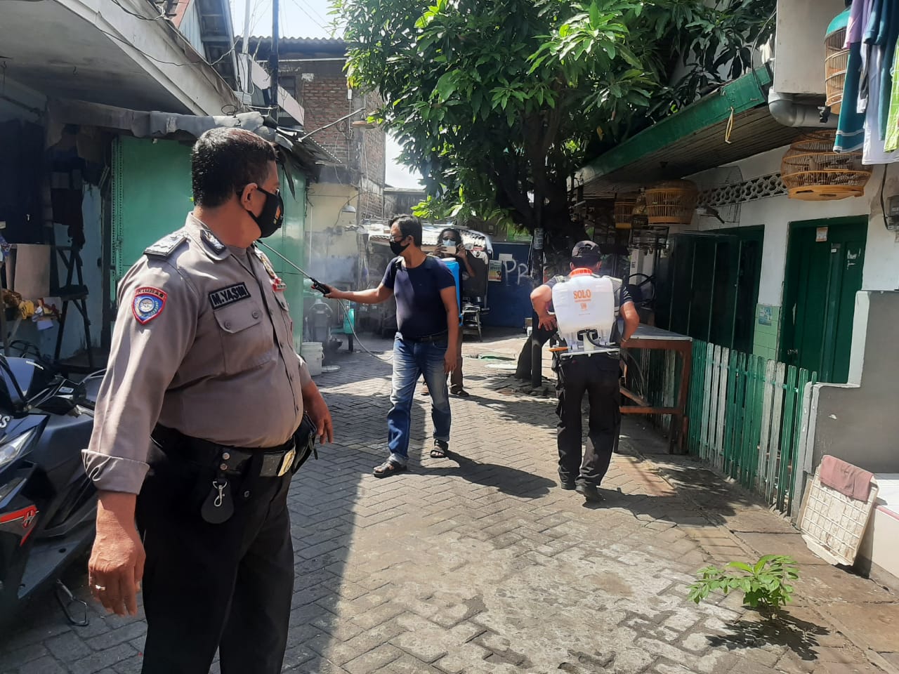 Seputarperak.com- Pengawalan penyemprotan disinfektan dilakukan Aiptu M Yasin, Babinkamtibmas Krembangan Utara di kediaman Bapak Agus di Jalan Muteran, yang baru saja meninggal dunia pada tanggal 5 Mei 2021.