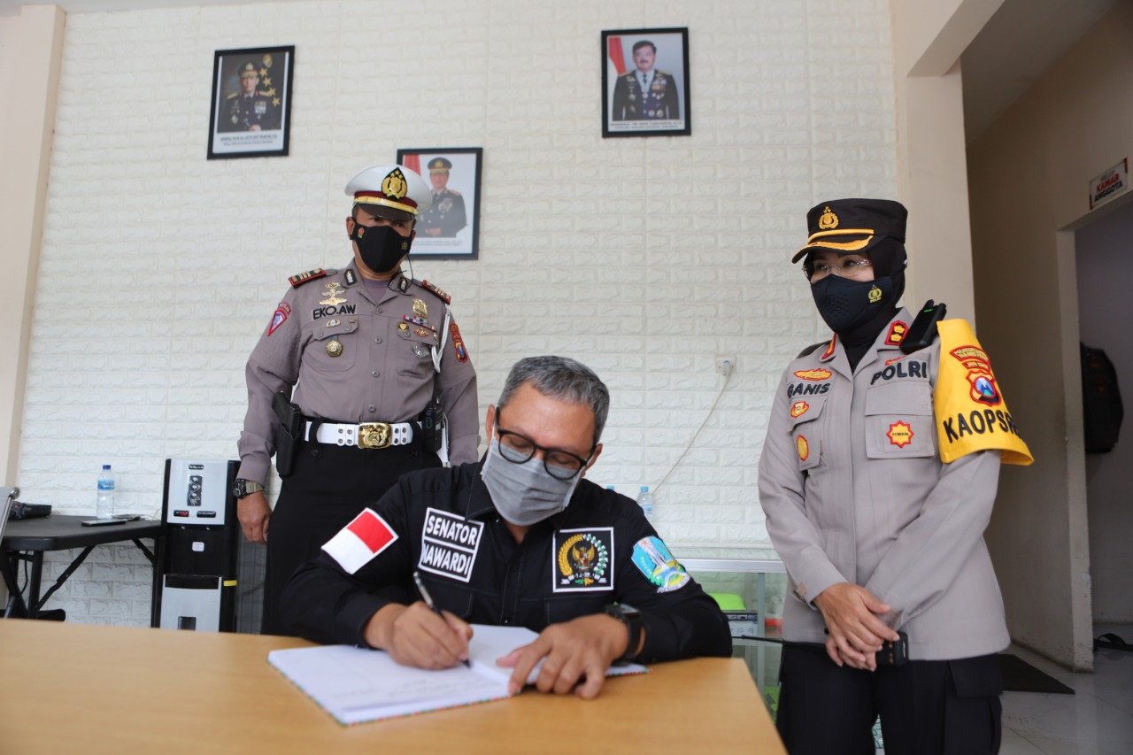 Dalam penyekatan ini hadir Dirsamapta Polda Jatim Kombes Pol Yudi Sumartono dan Kabid Humas Polda Jatim Kombes Pol Gatot Repli Handoko selaku Pamatwil.