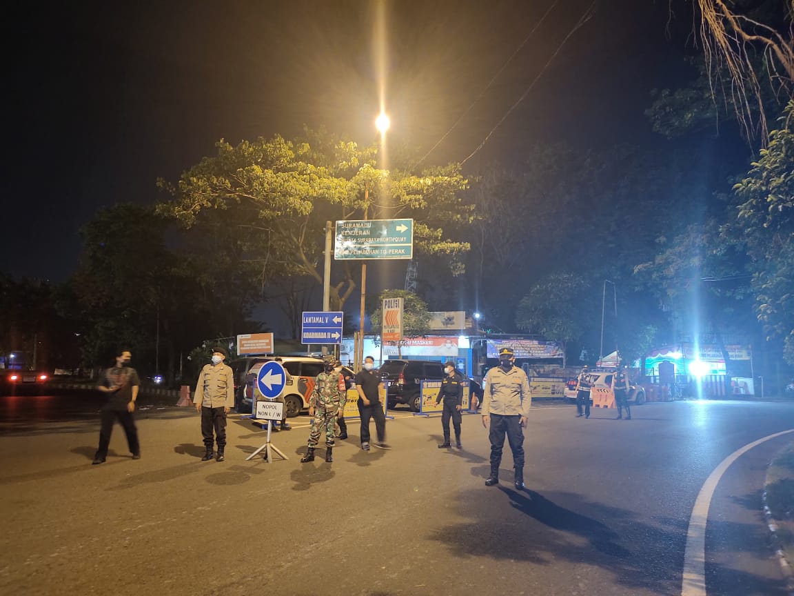Seputarperak.com- Penyekatan terus dilakukan Polsek Krembangan, Polres Pelabuhan Tanjung Perak di Pospam Operasi Ketupat Semeru, Jalan Laksda M Nasir, Minggu malam, 9 Mei 2021.