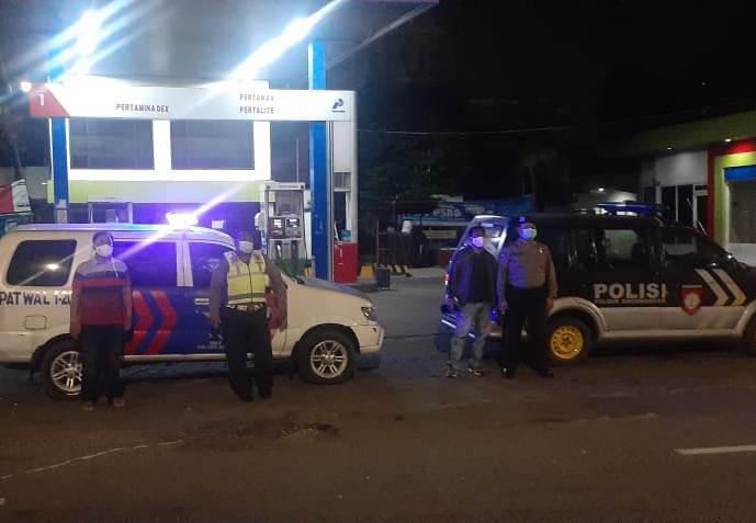 Seputarperak.com- Patroli dilakukan personil Polsek Krembangan, Polres Pelabuhan Tanjung Perak di SPBU Jalan Gresik Gadukan, Minggu malam, 9 Mei 2021.