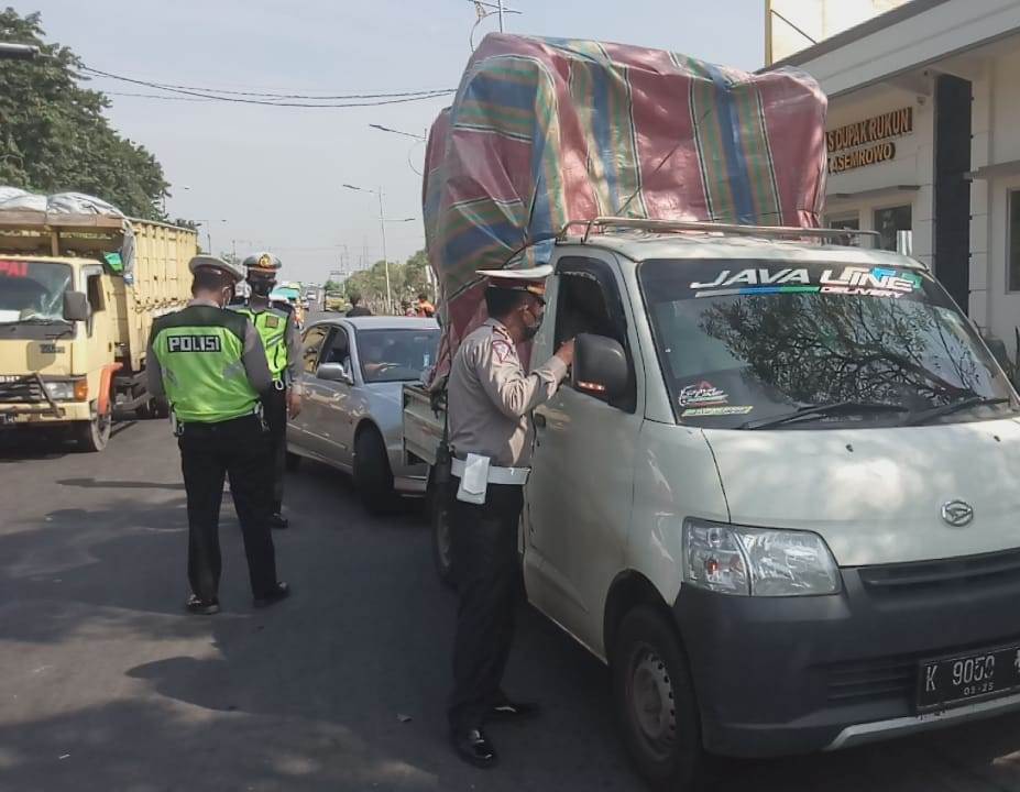 Setiap kendaraan yang lewat dilakukan pemeriksaan. Dimana hanya kendaraan berplat nomor L dan W yang diijinkan untuk melanjutkan perjalanan.