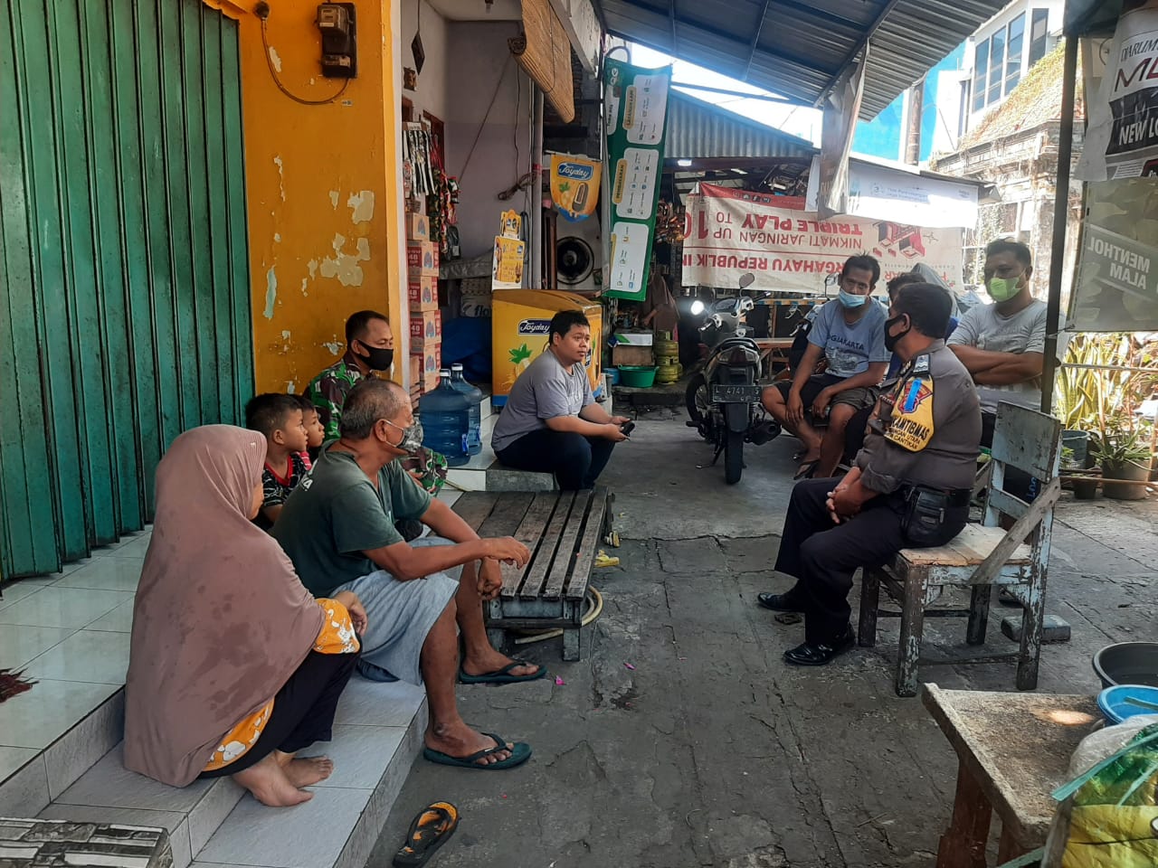 Seputarperak.com- Sosialisasi larangan mudik lebaran disampaikan Aiptu M Yasin, Babinkamtibmas Krembangan Utara, Polsek Pabean Cantikan, Polres Pelabuhan Tanjung Perak kepada warga Jalan Pesapen Kali.