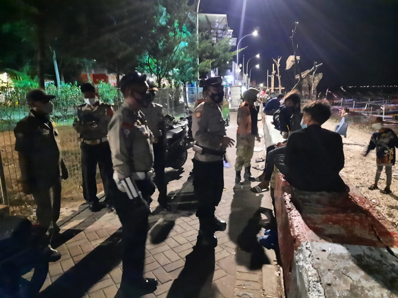 Seputarperak.com- Patroli dilakukan personil Polsek Kenjeran, Polres Pelabuhan Tanjung Perak bersama Satpl PP di Wisata Pantai Batu-Batu, Sabtu malam, 15 Mei 2021.