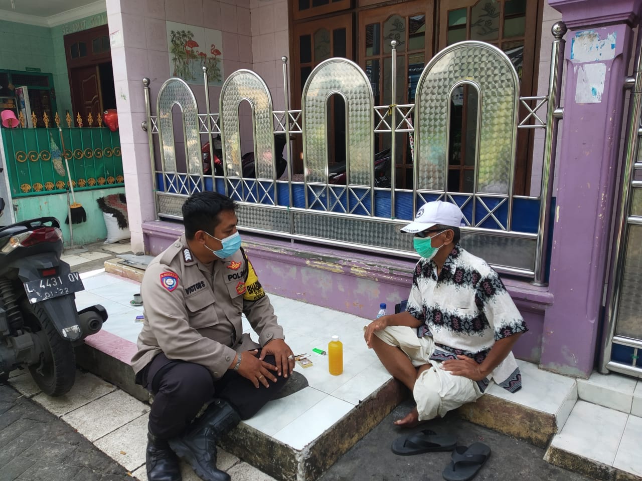 Seputarperak.com- Sosialisasi vaksinasi Covid-19 disampaikan Aiptu Achmad Faruk, Babinkamtibmas Ampel, Polsek Semampir, Polres Pelabuhan Tanjung Perak kepada Bapak Fidoli, ketua RW 09 Hangtuah.