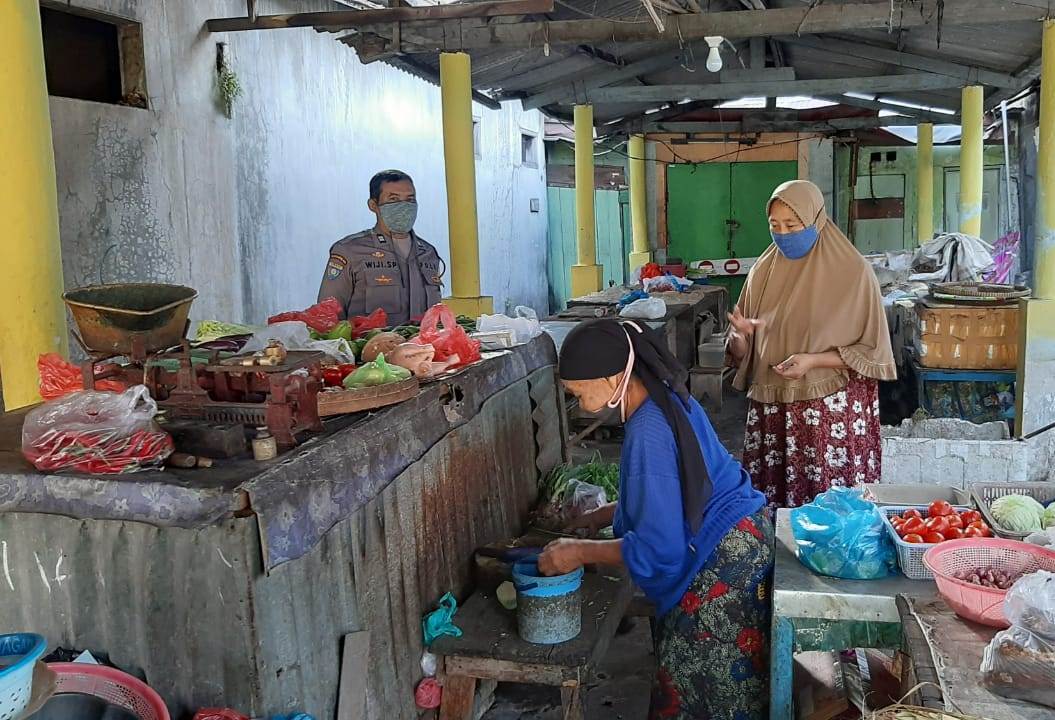 Dalam kesempatan itu, Aiptu Wiji menyampaikan teguran kepada pedagang dan pengunjung yang kedapatan tidak memakai masker dengan benar.