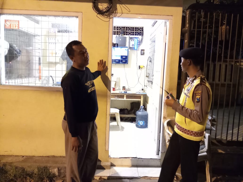 Setelah dipastikan semuanya aman, personil Satsabhara memberikan himbauan kamtibmas kepada petugas sekuriti yang sedang berjaga.
