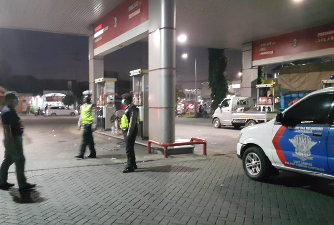 Seputarperak.com- Patroli dilakukan personil Polsek Pabean Cantikan, Polres Pelabuhan Tanjung Perak di SPBU Jalan Stasiun Kota, Jumat malam, 5 Juni 2021.