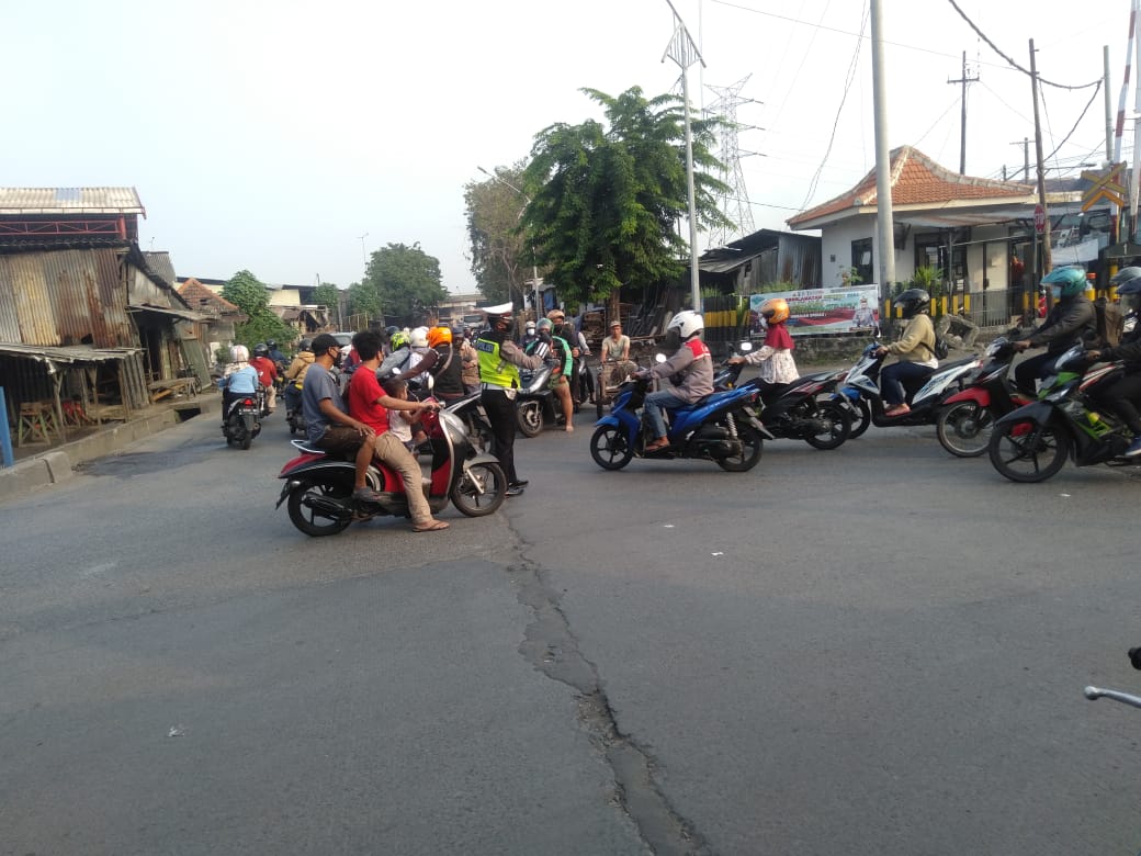 Seputarperak.com- Pengaturan lalu lintas pagi dilakukan personil Unit Lantas Polsek Asemrowo, Polres Pelabuhan Tanjung Perak, Senin, 7 Juni 2021.