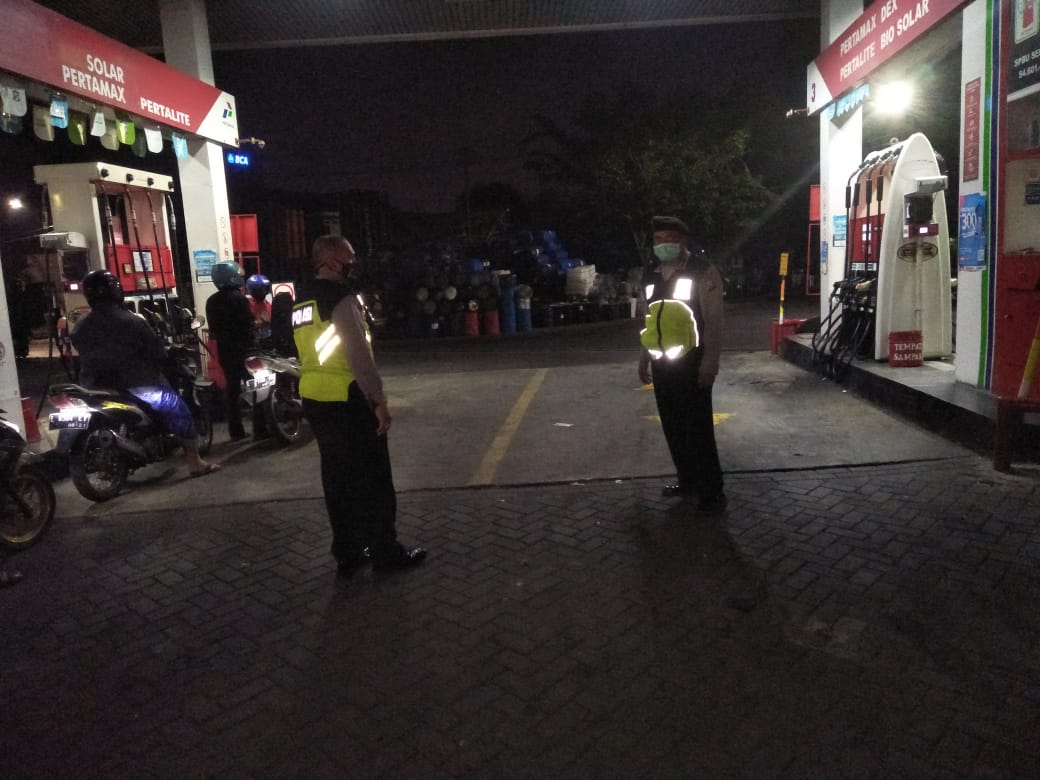 Seputarperak.com- Patroli dilakukan personil Polsek Pabean Cantikan, Polres Pelabuhan Tanjung Perak di SPBU Jalan Stasiun Kota, Senin malam, 7 Juni 2021.