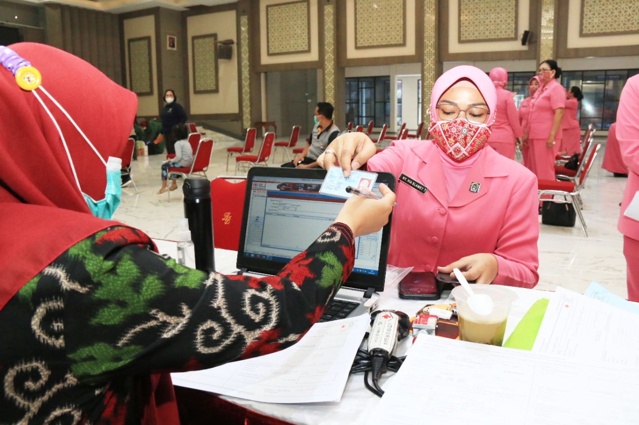 Seputarperak.com- Dalam rangka Hari Kesatuan Gerak Bhayangkari yang ke - 69 dan rangkaian kegiatan HUT Bhayangkara ke - 75, Bhayangkari Polda Jatim melakukan kegiatan bhakti sosial donor darah yang berlangsung di Gedung Mahameru Polda Jatim. ( Jum'at, 18 Juli 2021 ).