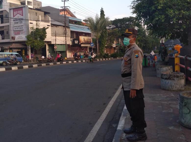 Seputarperak.com- Pengaturan lalu lintas dilakukan personil Polsek Semampir, Polres Pelabuhan Tanjung Perak di Jalan Karang Tembok, Minggu pagi, 20 Juni 2021.