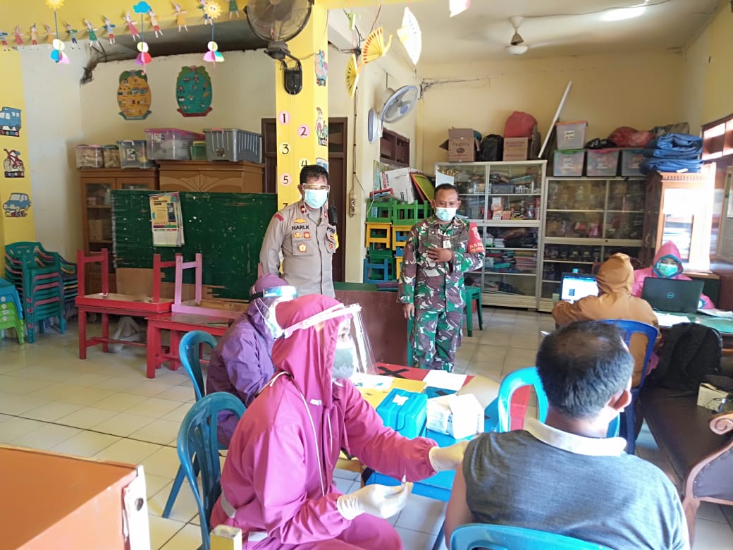 Beberapa personil Polsek Asemrowo juga diterjunkan bersama anggota Koramil untuk mengawal pelaksanaan vaksinasi Covid-19 ini.