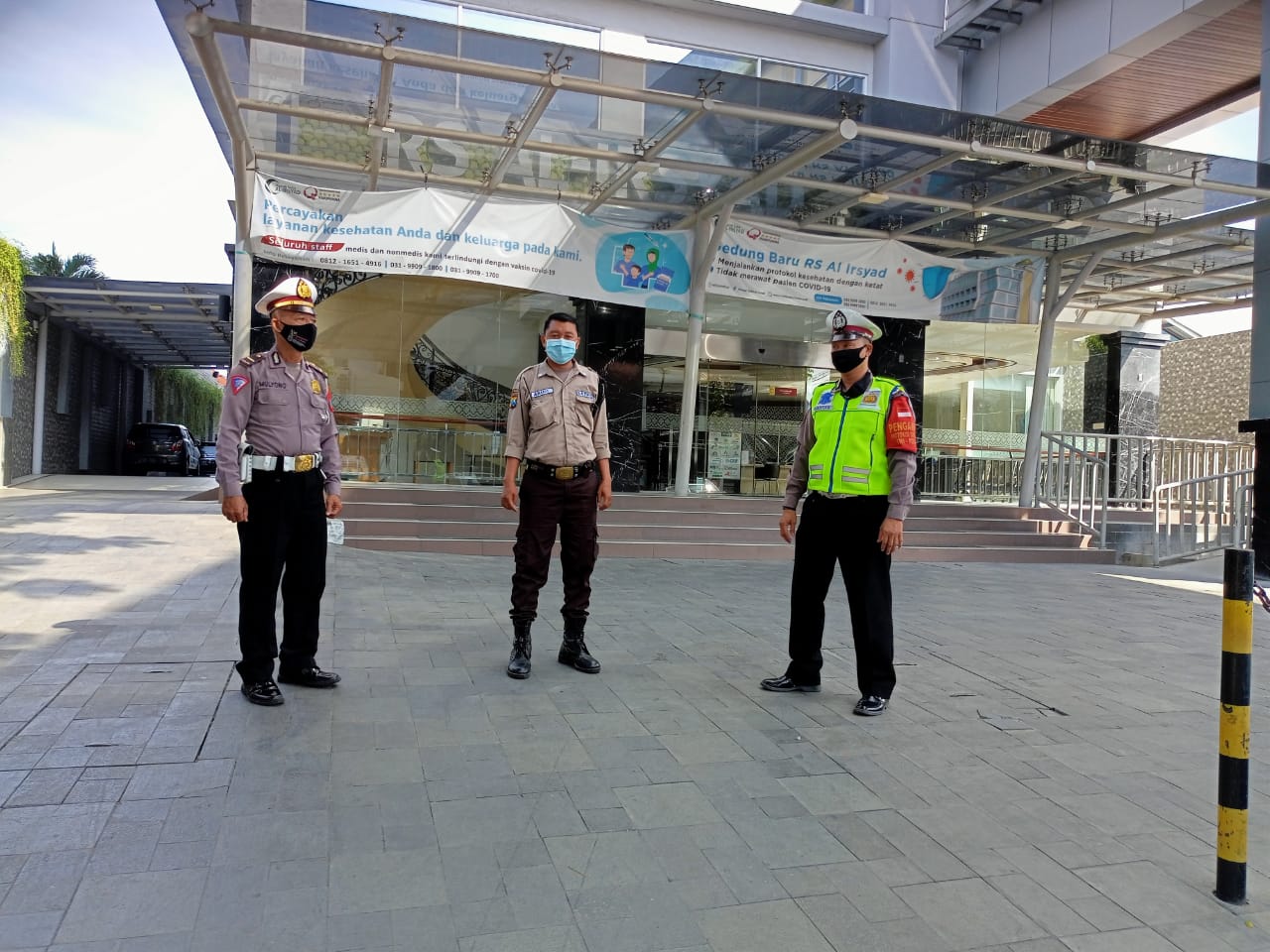Seputarperak.com- Patroli dilakukan personel Polsek Pabean Cantikan, Polres Pelabuhan Tanjung Perak di Rumah Sakit Al Irsyad, Jalan KH Mas Mansyur, Rabu siang, 7 Juli 2021.