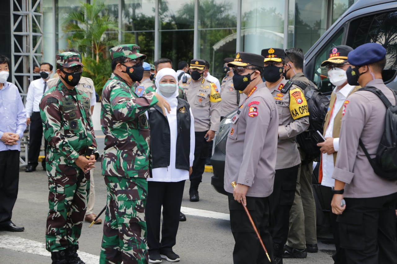 Dalam kunjungannya di Jawa Timur. Panglima TNI dan Kapolri, didampingi Forkompimda Jatim, Gubernur Jatim Khofifah Indar Parawansa, Pangdam V Brawijaya Mayor Jenderal TNI Suharyanto, dan Kapolda Jatim Irjen Pol Nico Afinta, serta Pejabat Utama Polda Jatim, meninjau jalannya vaksinasi di Mall Grand City Surabaya, dan pos penyekatan, serta memberikan sosialisasi penerapan Protokol Kesehatan (Prokes) di desa Sawotratap, Kecamatan Gedangan, Kabupaten Sidoarjo.