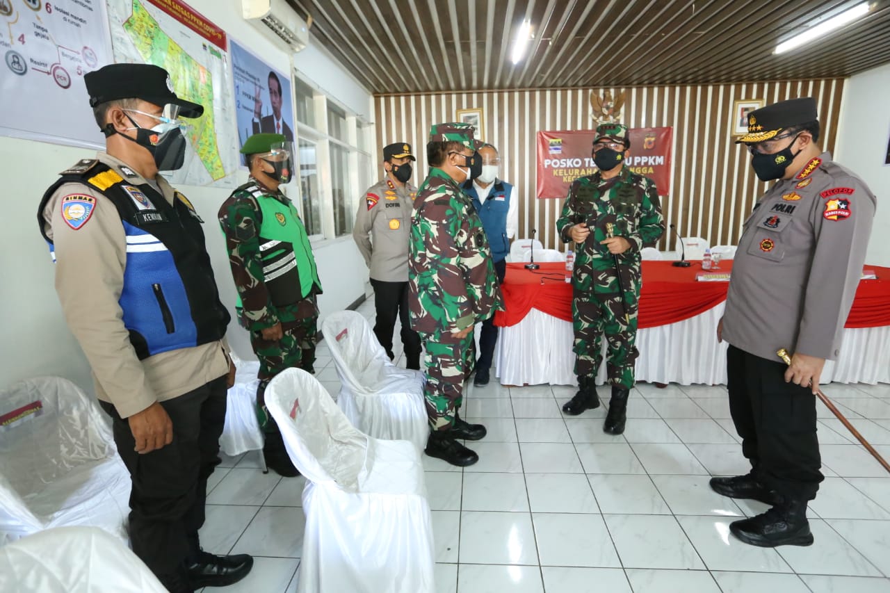 Seputarperak.com- Panglima TNI Marsekal Hadi Tjahjanto besama Kapolri Jenderal Listyo Sigit Prabowo meninjau posko PPKM Darurat di Kelurahan Turangga, Lengkong, Bandung, Jawa Barat, Jumat (16/7/2021).