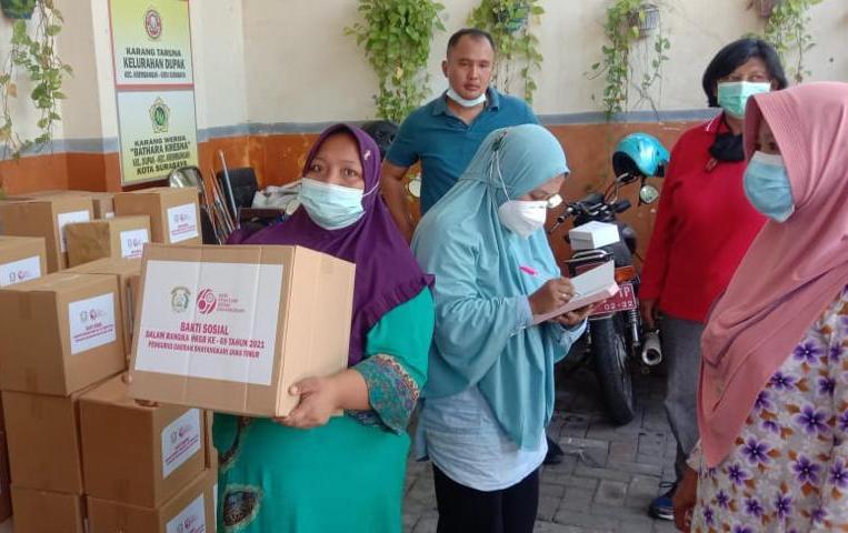 Sebanyak 175 paket Sembako dibagikan kepada warga yang terdata kurang mampu di Kampung 1001 malam, Kelurahan Dupak.