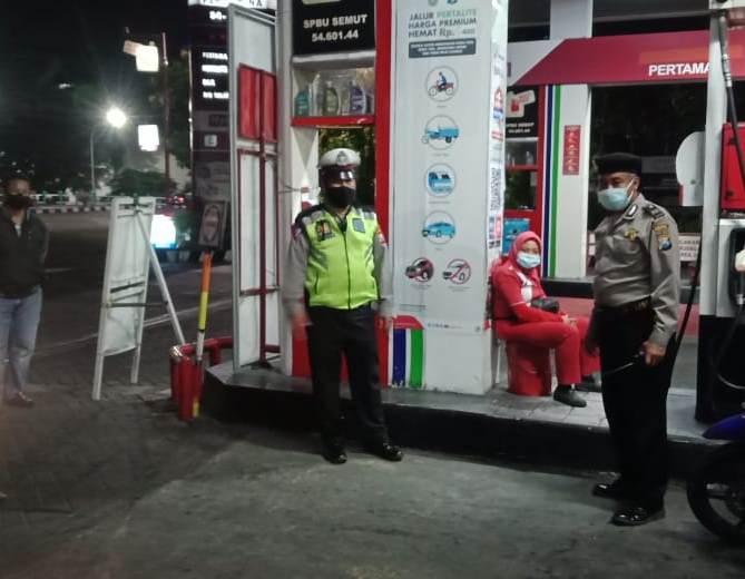 Seputarperak.com- Patroli dilakukan personil Polsek Pabean Cantikan, Polres Pelabuhan Tanjung Perak di SPBU Jalan Stasiun Kota, Rabu malam, 28 Juli 2021.