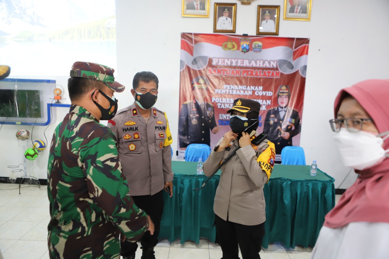 Saat itu Kapolres juga menyerahkan bantuan sejumlah peralatan dalam penganan Covid-19 kepada pengurus KTS RW 01 Kelurahan Asemrowo.
