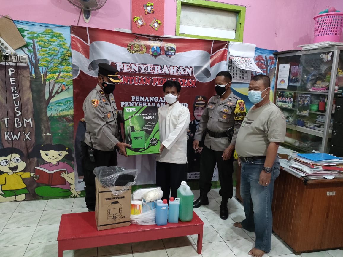Seputarperak.com- Polsek Kenjeran, Polres Pelabuhan Tanjung Perak menyalurkan bantuan peralatan penanganan Covid-19 kepada pengurus RW 02 Jalan Kedinding Tengah, Kelurahan Tanah Kali (Takal) Kedinding, Kamis malam, 5 Agustus 2021.