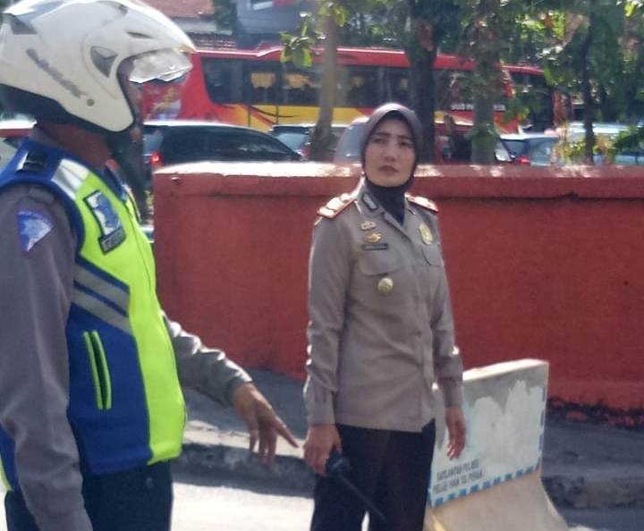 Kali ini Kapolsek Pabean Cantikan, AKP Mellysa Amalia, SH, S.I.K, juga ikut hadir membantu personil Unit Lantas.