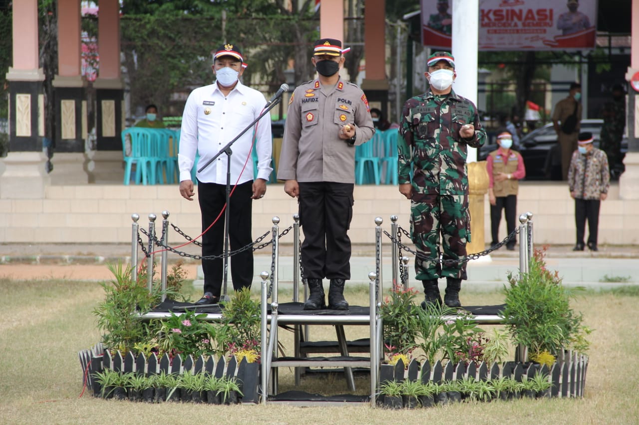 Apel yang dilaksanakan pada pukul 08.00 Wib dipimpin langsung oleh Forkopimda Kabupaten Sampang.