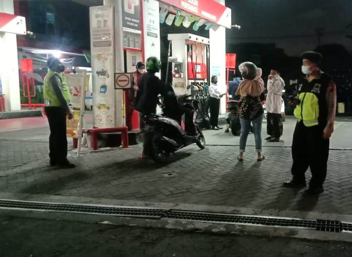 Seputarperak.com- Patroli dilakukan personil Polsek Pabean Cantikan, Polres Pelabuhan Tanjung Perak di SPBU Jalan Stasiun Kota, Senin malam, 9 Agustus 2021.
