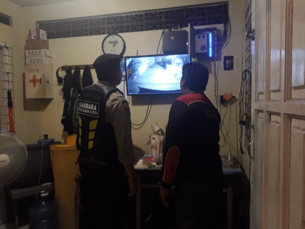 Saat itu personil Satsabhara juga menyempatkan memantau layar monitor di dalam ruangan pos keamanan yang terhubung dengan CCTV ke beberapa titik yang ada di pemukiman.