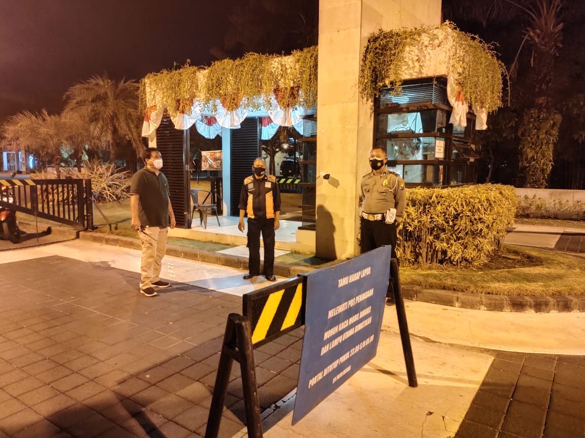 Disamping melakukan pengawasan, personil Polsek Kenjeran juga menyampaikan pesan keamanan kepada para petugas sekuriti di lokasi.