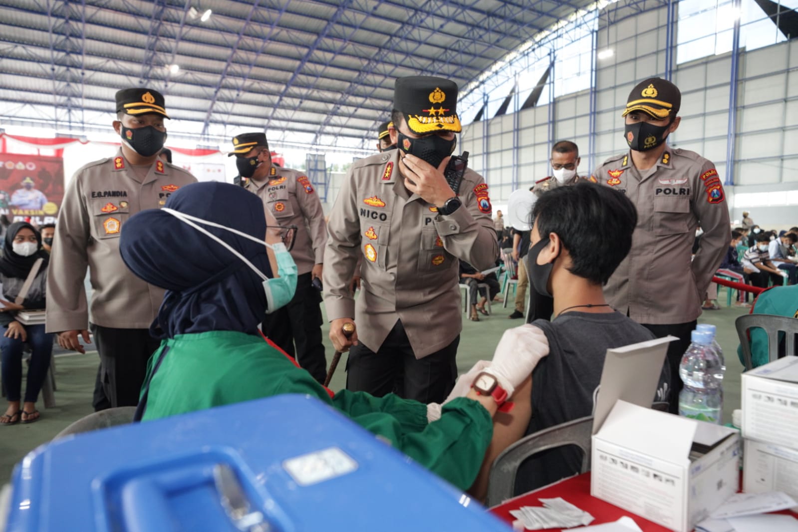 Kapolda Jatim Irjen Pol Nico Afinta menyampaikan ucapan terimakasih kepada masyarakat yang sudah datang mendaftar untuk melaksanakan vaksin ini, selain itu tak lupa Kapolda Jatim juga menyampaikan ucapan terimakasih pada panitia yang sudah menyiapkan kegiatan ini dan tenaga kesehatan yang sudah datang menyiapkan diri, sehingga proses semuanya berjalan dengan lancar.