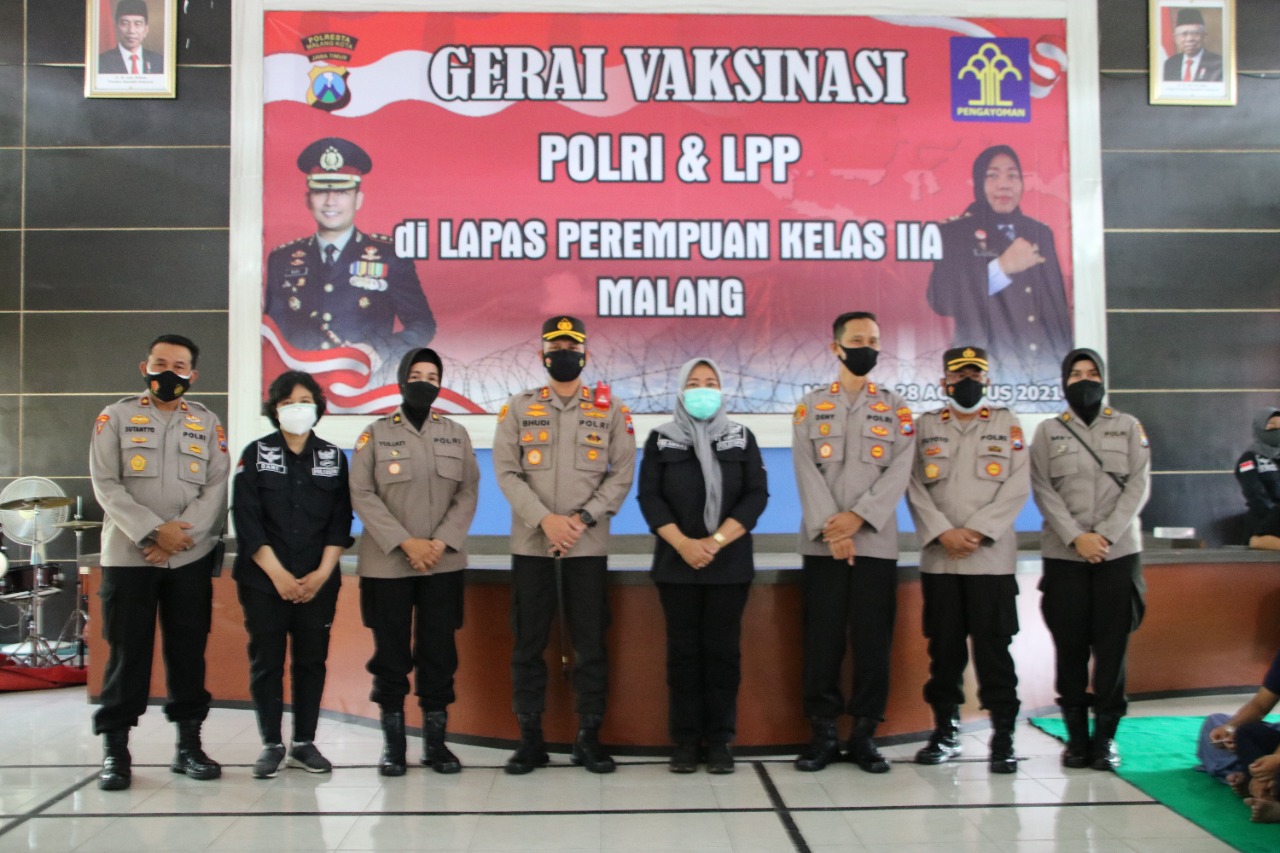 Seputarperak.com- Sabtu (28/8/2021) Kapolresta Malang Kota AKBP Budi Hermanto kunjungi Lapas Wanita Kelas 2 Malang untuk cek pelaksanaan Vaksinasi untuk warga binaan Lapas Perempuan Kelas 2 Kota Malang, dalam rangka memperingati HUT Polwan ke 73.